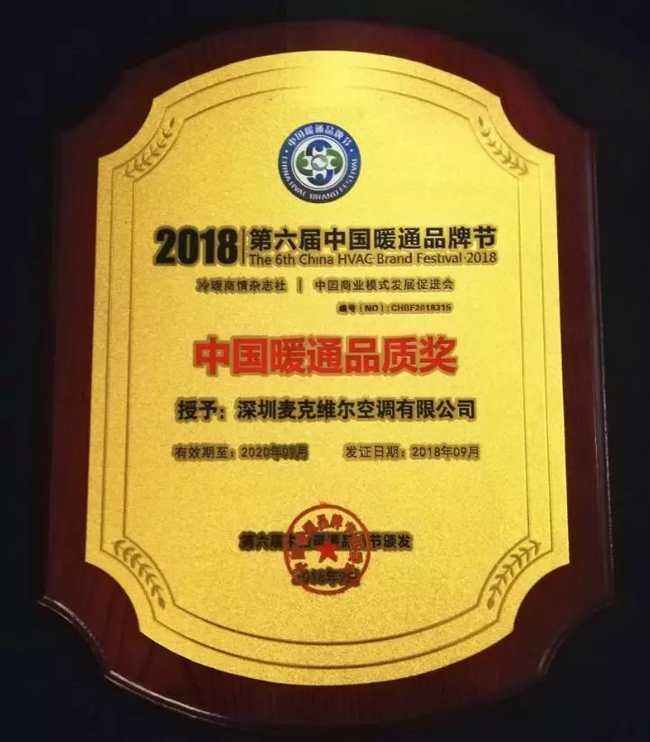 中國暖通品牌節(jié)通過嚴(yán)格的評選機(jī)制,推選出一批優(yōu)秀品牌和精彩案例,并頒發(fā)獎項(xiàng)。其中,“2018年暖通品質(zhì)獎”便是中國暖通品牌節(jié)上一項(xiàng)含金量十足的大獎。麥克維爾憑借著優(yōu)秀的質(zhì)量管理體系、高標(biāo)準(zhǔn)的客戶服務(wù)、創(chuàng)新的科技產(chǎn)品及可持續(xù)穩(wěn)健的業(yè)務(wù)增長,經(jīng)過重重評選脫穎而出,獲此殊榮。