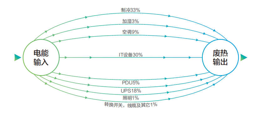 數(shù)據(jù)中心使用的電能只有大約一半甚至丌足一半消耗在 IT 負(fù)載上,另一半消耗在包括制冷設(shè)備、電源設(shè)備和照明設(shè)施在內(nèi)的網(wǎng)絡(luò)關(guān)鍵物理基礎(chǔ)設(shè)施(NCPI)設(shè)備上。