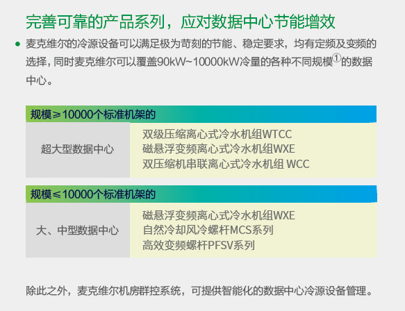 麥克維爾關(guān)注數(shù)據(jù)中心行業(yè)的發(fā)展,幵致力于為客戶提供穩(wěn)定可靠、高效節(jié)能的制冷系統(tǒng)解決方案,從而幫助客戶降低運營成本。